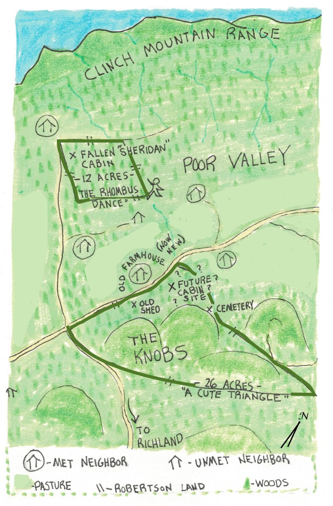 I feel very lucky to have land I can dream about going to. I did nothing to earn it. This land was walked on, dug in, slithered across and flown over for millions of years before I existed. It comes to me through the ambitions of my grandfather, a long-time chemistry professor and head of the department at the University of Tennessee. He was likely able to acquire the land at a good price during the great depression. Other people’s hardships worked in his favor.