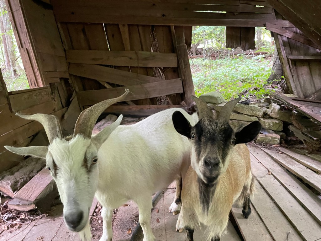 I was visited by the neighbors two goats while taking measurements of the Sheridan cabin.