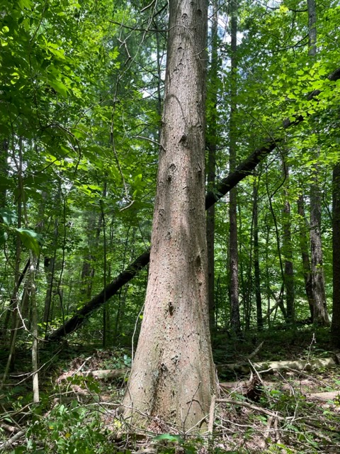 Sometimes I find trees along the trail that seem to need a helping hand. This one was overrun by multiflora rose which can produce a vine the size of your arm. This is a before and after shot. I have no idea how much freeing a tree of vines benefits it, but it stands to reason that it does.