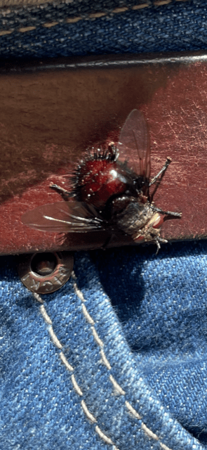 Animals: The bristle fly on the left was very scary looking and I knew nothing about it. I walked with it for a hundred feet before gently brushing it off my belt. It is harmless to humans but if you are a larva watch out!