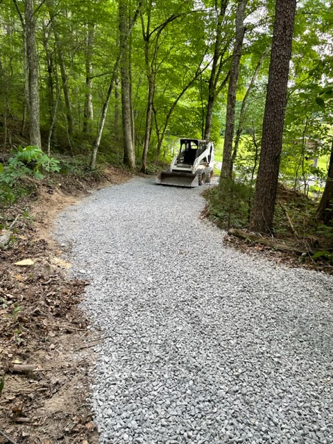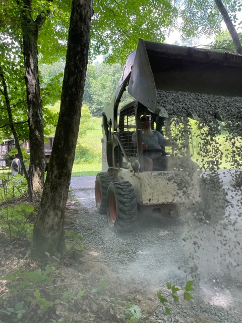 The driveway is in thanks to a great recommendation for Jesse’s Lawn Service and Landscaping, Bobcat and Excavating. Watching someone good at using these machines it’s easy to see how the idea of transformers came about. Machine and person become one.