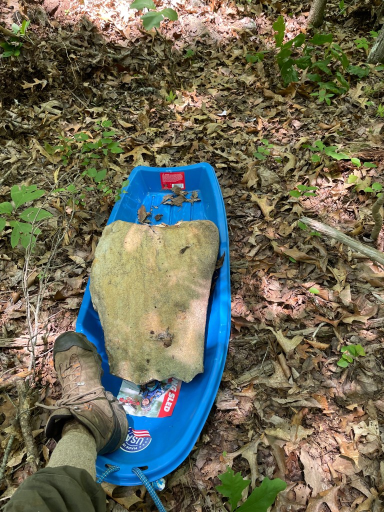 I’m not just moving rock. I’m also attempting to transplant some Christmas Fern and Cedar saplings. We’ll see if they make the transition. Summer may not be the best time for moving plants.